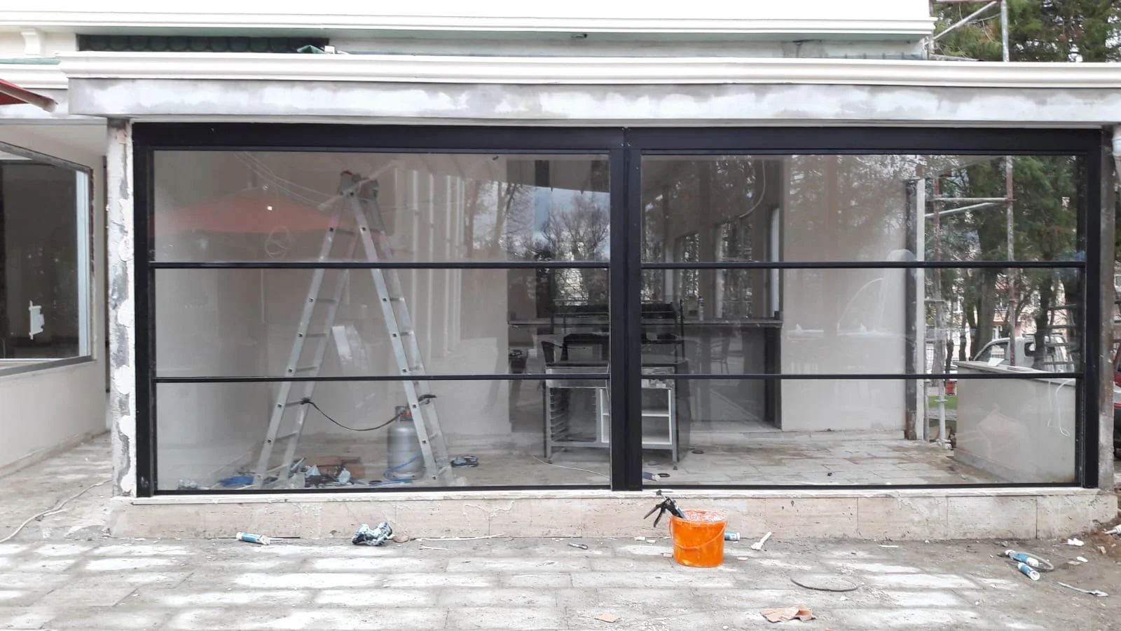 Profiller ve camlar şantiyede tek tek birleştirilir.
